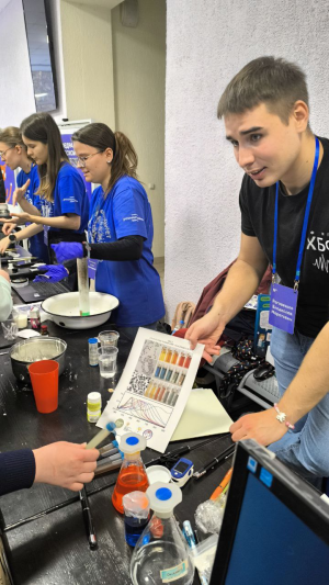 Традиционно на высоком уровне выступила команда студентов, выпускников и сотрудников кафедры химической и биологической физики, базирующейся в нашем институте. Команде удавалось находить общий язык как с первоклашками, так и со взрослыми, за 4 часа пообщавшись с несколькими сотнями человек!